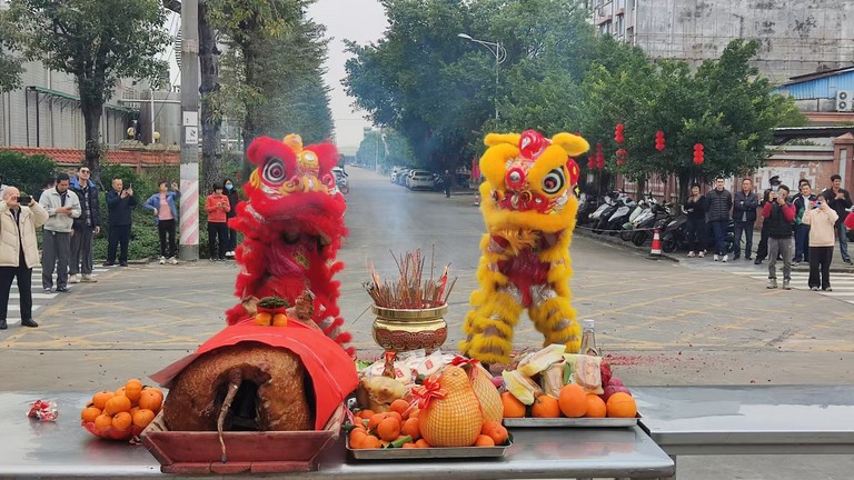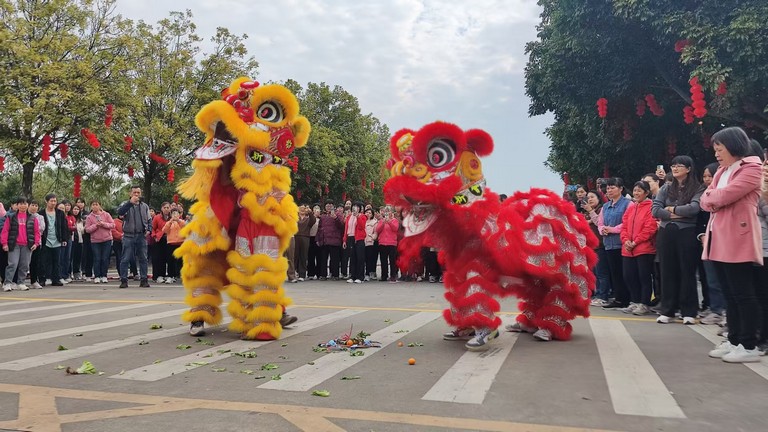 威風凜凜的醒獅隊在激昂的鑼鼓聲中靈動起舞,時而跳躍、時而翻騰,動作矯健有力,神态栩栩如生,象征著公司在新的一年裏慧眼如炬,洞察商機,前途光明。